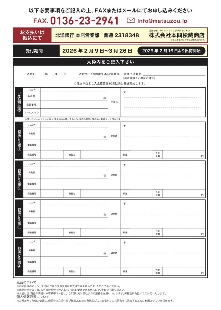 ご注文は下記の注文書をダウンロード、メールへ添付またはFAXにてお申込みください。